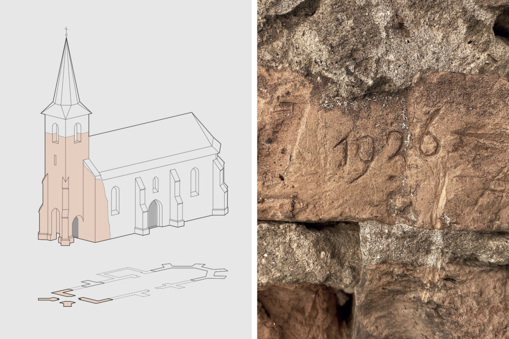 1999-ben Ódor János és K. Németh András vezetésével régészeti kutatásra került sor, amely tisztázta a templom kiterjedését, pontos alaprajzát. A feltárás alapján a templom belső hosszúsága 17 m, a szentély szélessége 4,8 m. A megtalált padlótéglák alapján a templomnak (harántirányú rakású) téglapadlója lehetett, az egykori ablaküvegekre az ablakszem-töredékek utaltak. A templom egésze téglából épült, a hajóhoz sokszögzáródású szentély csatlakozott, északi oldalán sekrestyével. A nyugati homlokzathoz csatlakozott a hajóval együtt épült torony, amelynek különleges sajátossága a nyitott árkádíves földszinti előcsarnok, ahonnan a templom nyugati kapuja nyílt, amely csúcsíves formájú lehetett. A toronyalj boltozott volt, a torony emeleteit a templom karzatáról lehetett megközelíteni. A toronybelsőben azonosított habarcs-elszíneződések a templom leégésére utalhatnak. A szinte megközelíthetetlen műemlék állaga az utóbbi hatvan évben jelentősen leromlott, a mostani 2025-ös beavatkozás időszerű volt.