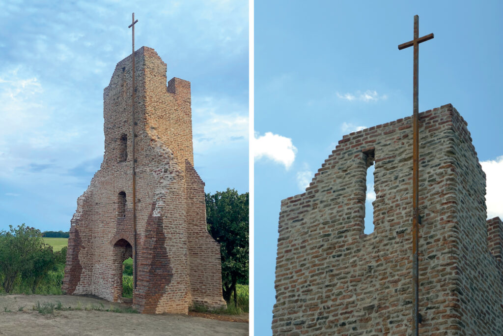 A ROM Vándor program keretében végzett beavatkozások elsődleges célja a fennmaradt műemléki értékek szakszerű védelme volt – nem újjáépítve, hanem eleven mementóként megőrizve az idő által megformált építményt. A projekt során megtörtént a megőrződött, többszáz éves téglafalazatok szerkezeti stabilizálása, a torony repedéseinek korszerű falvarrási módszerrel történő megerősítése, a teljes falazat egységes összedolgozása. Továbbá, az eredeti vakolatok restaurátori konzerválása, a villámvédelem kialakítása, és a romterület (és annak megközelítésének) tájépítészeti rendezése. A templomrom tájképi szerepét tekintve, és a tájegység középkori álló emlékeinek ritkasága miatt is fontos műemlékünk.