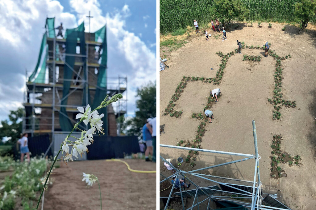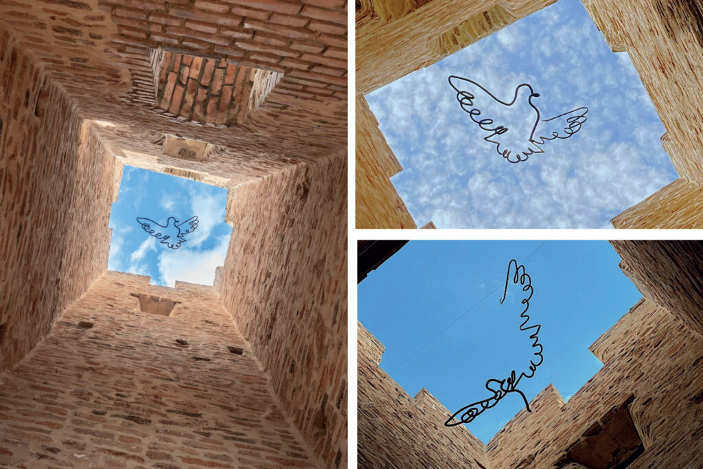 A program egyik különlegessége, hogy nem csupán állagmegóvást végez, hanem a hely szelleméhez illeszkedő, visszafogott kortárs építészeti eszközökkel újraértelmezi a romok szakrális és közösségi szerepét. Itt Regölyön két egyedi „mértéktartó” kortárs építészeti eszközt integráltak az építménybe. Egy (Corten) acélból készült villámhárítót, amely egyszerre lát el műszaki funkciót és szolgál keresztként, így kreatívan kapcsolja össze az épület villámvédelmét annak szakrális funkciójával. És egy különleges, függesztett fémplasztikát a torony belsejében, mely a kürtő középpontjából szemlélve szárnyaló gerlét – a kereszténységben a Szentlélek, a tisztaság és az ártatlanság szimbólumát – formálja. A rom-tér ezen térinstalláción keresztül szólítja meg az idelátogató vándort.
